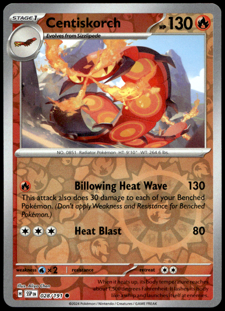 Pokémon Centiskorch 028/191 – Reverse Holofoil Common SV08: Surging Sparks EN