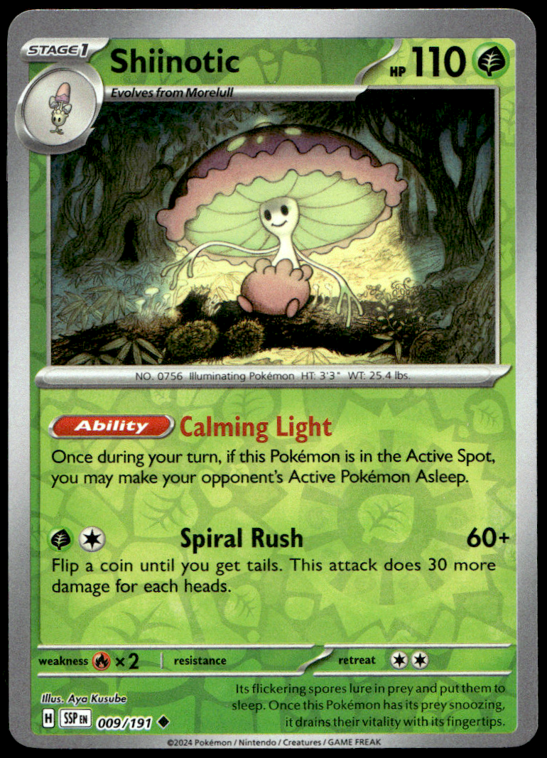 Pokémon Shiinotic 009/191 – Reverse Holofoil Uncommon SV08: Surging Sparks EN